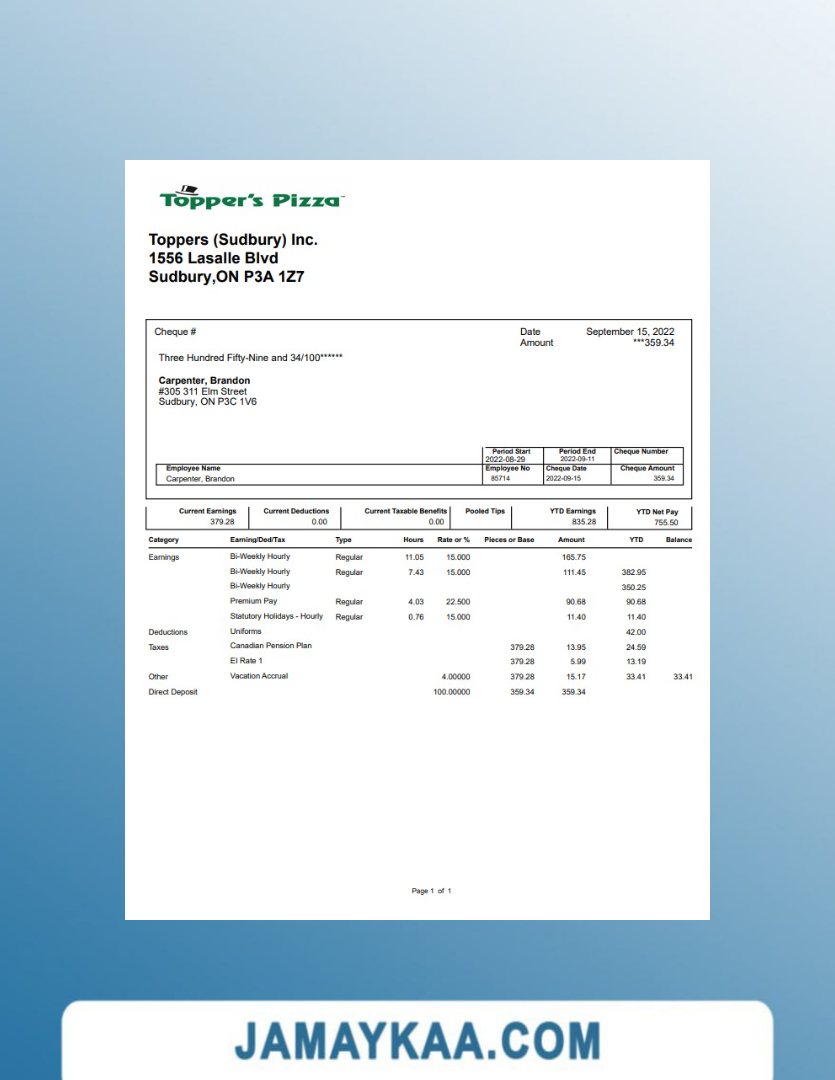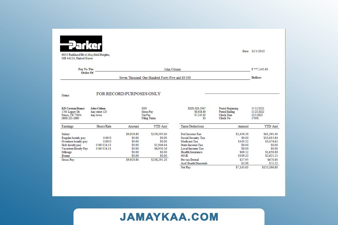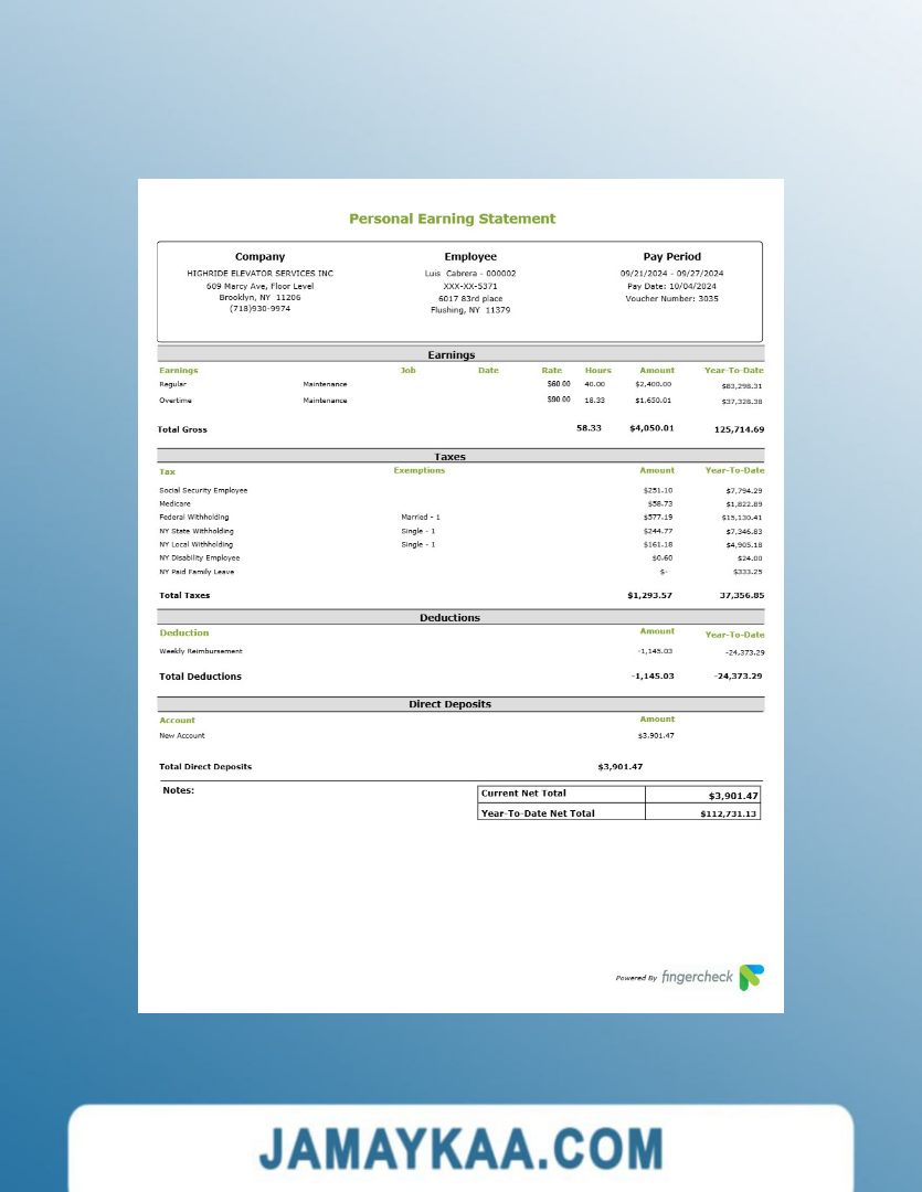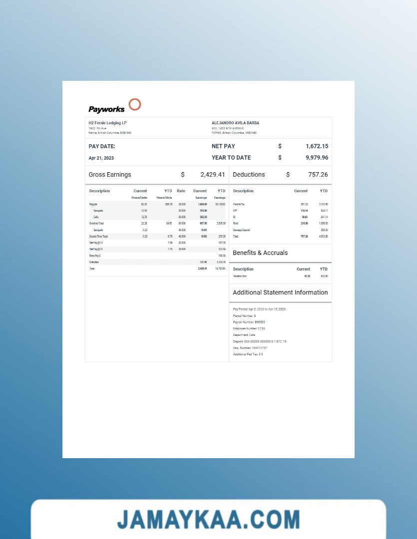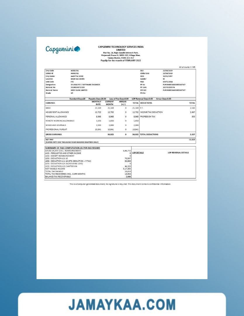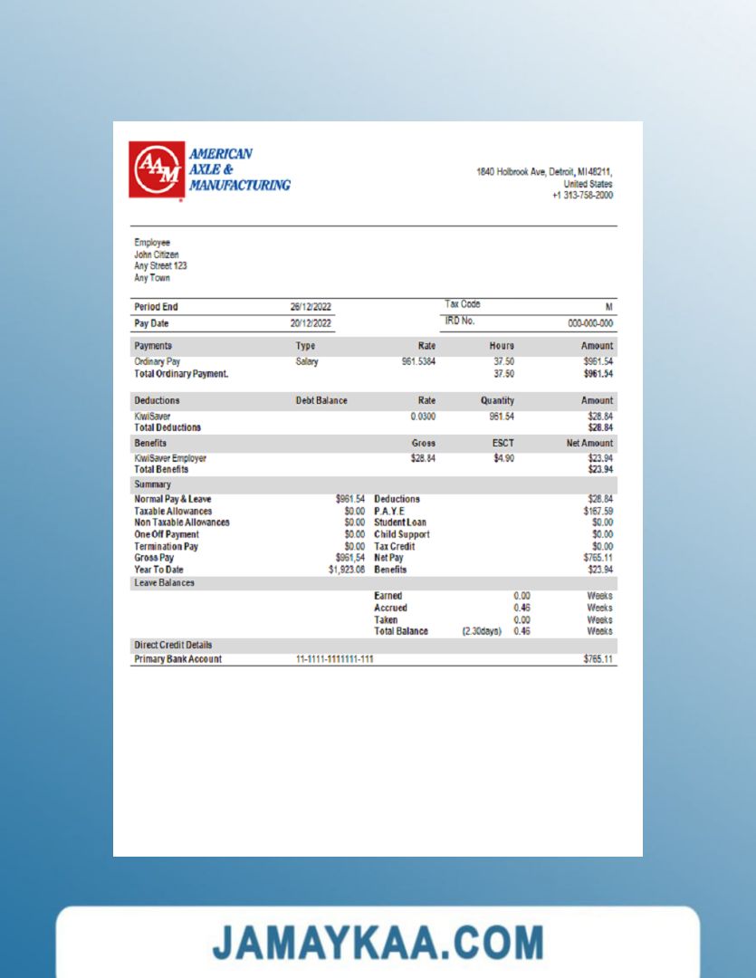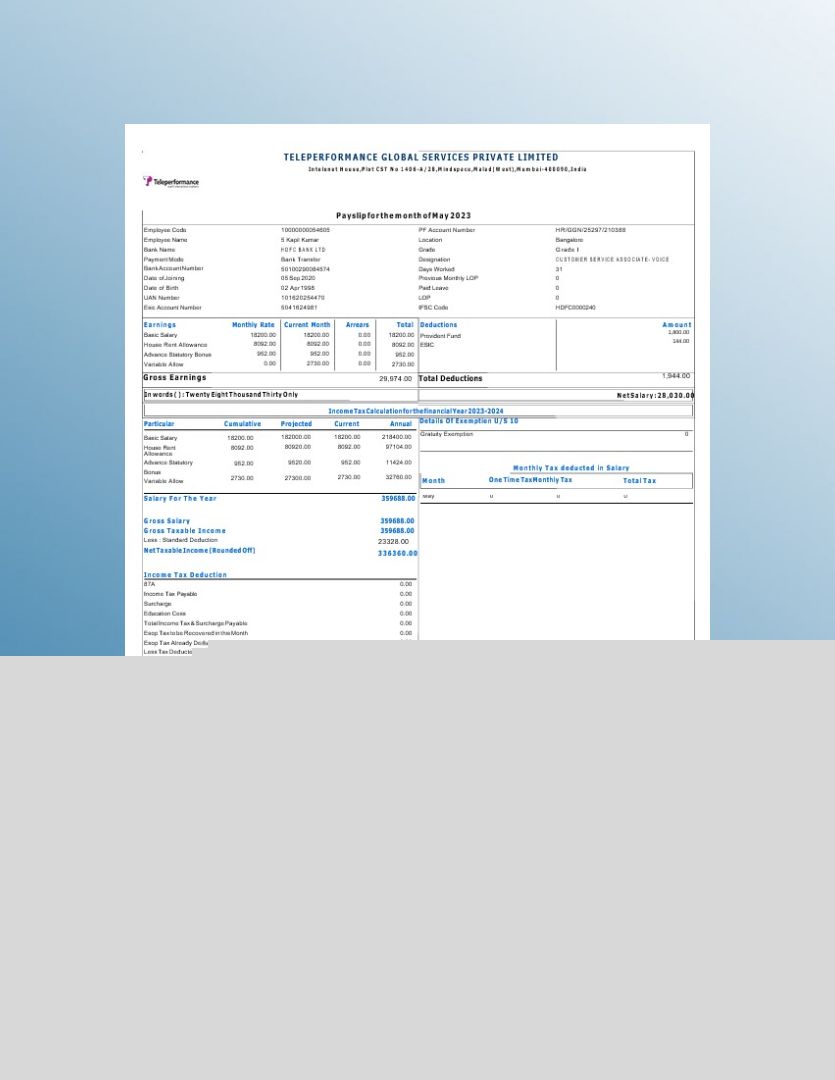 Controller and Accountant General's Department payslip template in Word