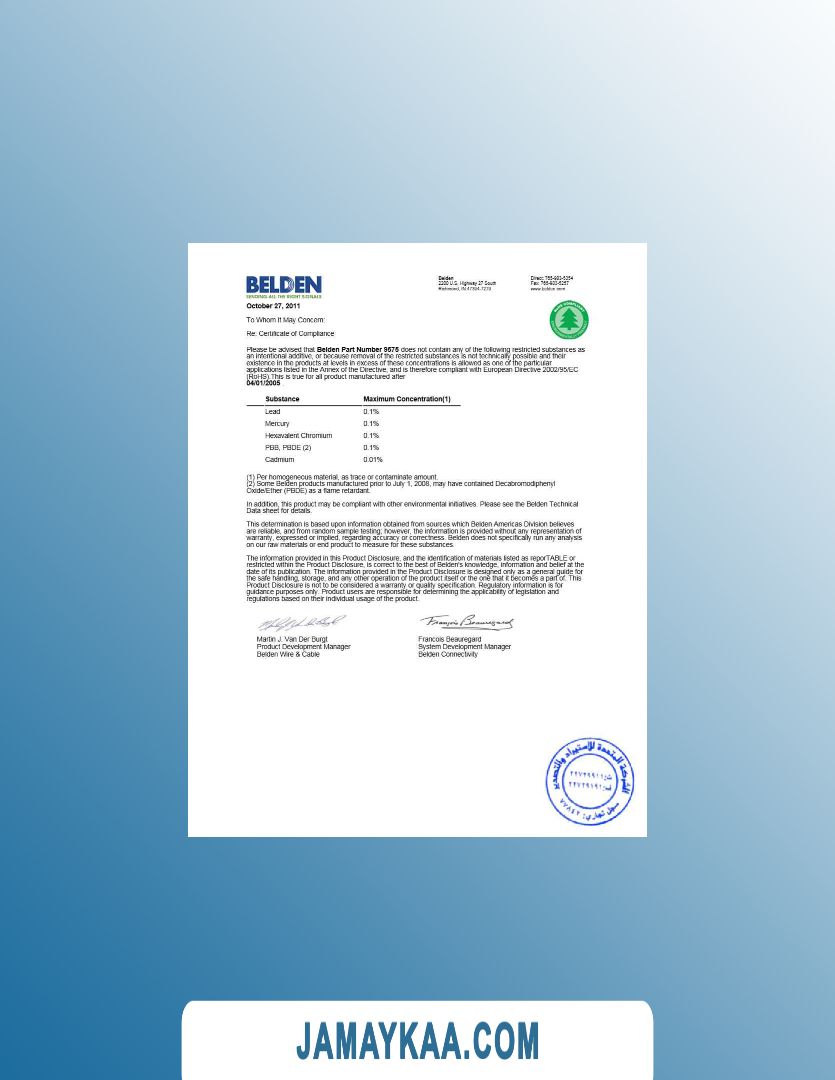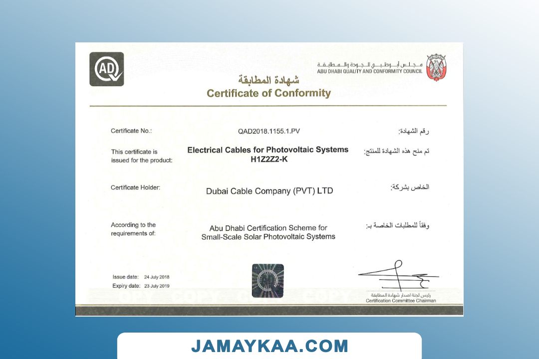 تصريح الإقامة ABU DHABI certificate of conformity template Australia IAPMO R&T OCEANA certificate of conformity, 1 California Greenguard product certificate, 1 Colombua CIDET product certificate, 1 France ACERMI product certificate, 1 France Air liquide welding product certificate, 1 France Bureau Veritas approval certificate, 1 France CIDET product certificate, 1 France Halal Certification Services product certificate, 1 France Sungrow conformity product certificate, 1 France TUV NORD CERT product certificate, 1 Germany AFRISO product certificate, 1 Germany DGUV Test product certificate, 1 Germany Halal Food Council of Europe (HFCE) product certificate, 1 Germany ift Rosenheim product certificate, 1 Germany Presafe EC certificate, 1 Germany TÜV NORD product certificate, 1 Germany TÜV SÜD product certificate, 1 India Pharmaceuticals product certificate, 1 India Saudi Basic Industries Corporation certificate, 1 India Supreme production test certificate, 1 India Telecommunication Mandatory Conformance product certificate, 1 Indonesia Kementerian Perindustrian product certificate, 1 Indonesia Qualis product certificate, 1 Indonesia Suconfindo international certificate, 1 Islamic Da'wah Council of the Philippines Inc halal product certificate, 1 Israel Pharmaceutical Administration Cosmetics product certificate, 1 Italy ALPI wood certificate, 1 Italy CSI Cert industrial certificate, 1 Italy Ente Certificazione Macchine product certificate, 1 Kazakhstan Tengizchevroil product certificate, 1 Khazakhstan Gasoilene product quality certificate, 1 Malaysia Halal Food Council International product certificate, 1 Mexico KOF-K Kosher Supervision product certificate, 1 Netherlands telefication certificate, 1 New Zealand Fonterra product certificate of analysis, 1 Nigeria Standards organisation of Nigeria conformity certificate, 1 Russia BINAGroup product certificate, 1 Singapore green building council product certificate, 1 Spain AENOR product certificate (version 1), 1 Spain AENOR product certificate (version 2), 1 Spain CIDET product certificate, 1 Spain Control Union Peru product certificate, 1 Spain Sigma product certificate, 1 Turkey Lincoln Electric product certificate, 1 Turkey UDEM International certificate, 1 Ukraine AEG product certificate, 1 Ukraine Ecotherm Project product certificate, 1 Ukraine Isomat building quality product certificate, 1 United Kingdom Loss Prevenion Certification Board(LPCB) certificate, 1 USA IFANCA halal product certificate (version 1), 1 USA IFANCA halal product certificate (version 2), 1 USA LEGO Systems children's product certificate, 1 USA product design certificate,1 USA Virgina Open Charge Allience(OCPP) product full certificate, 1 US South Richmond Belden product certificate, 1