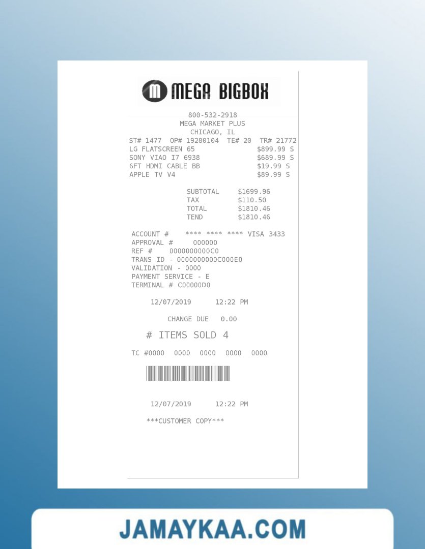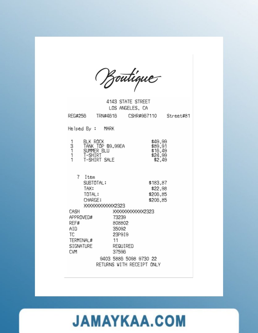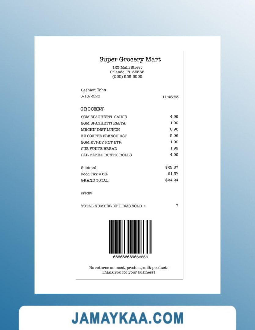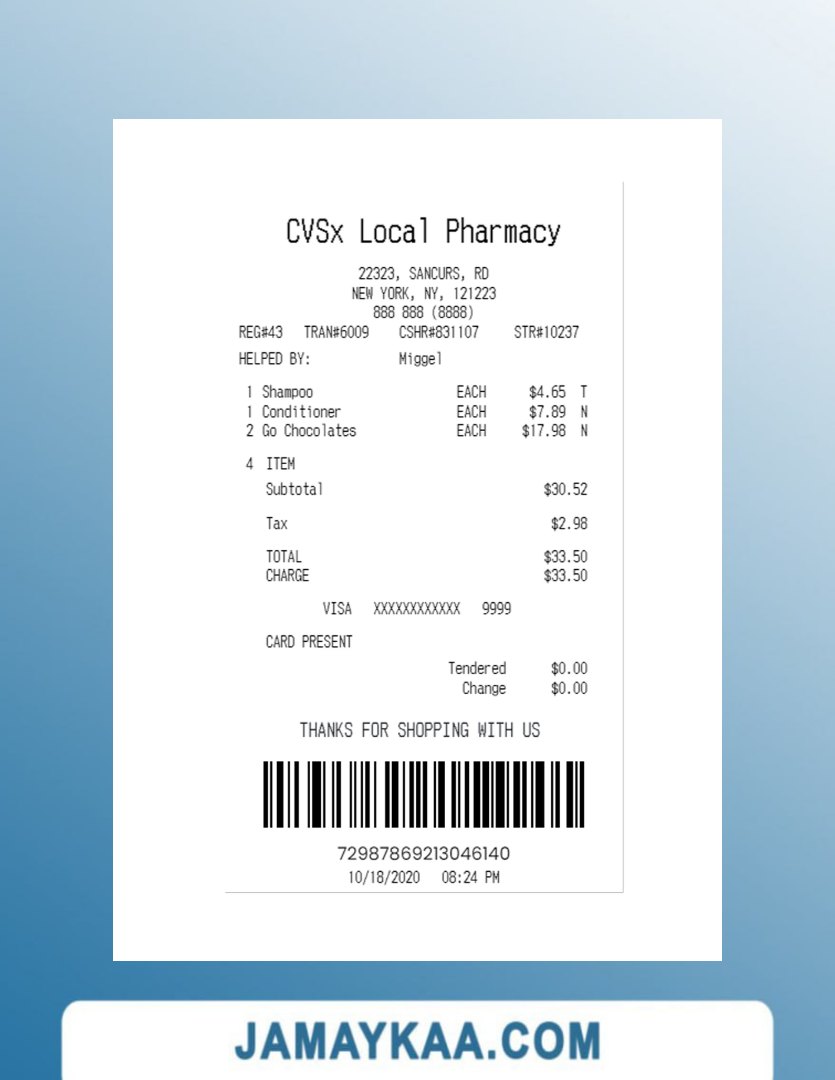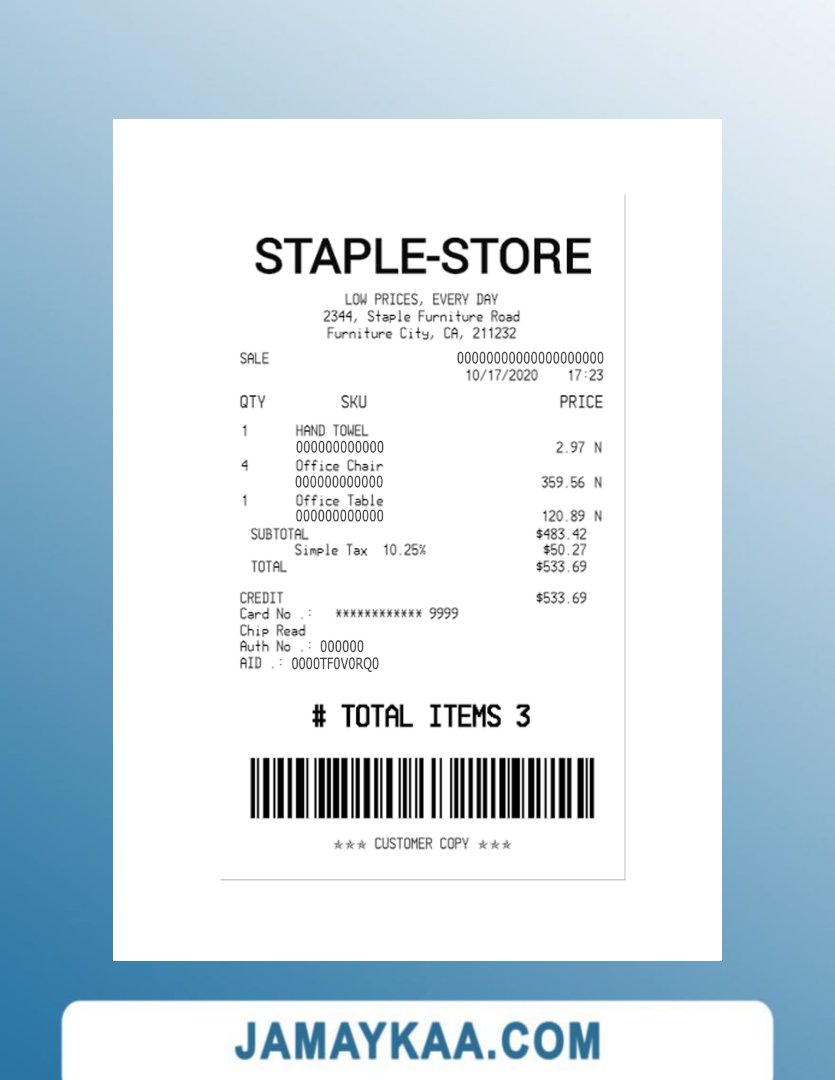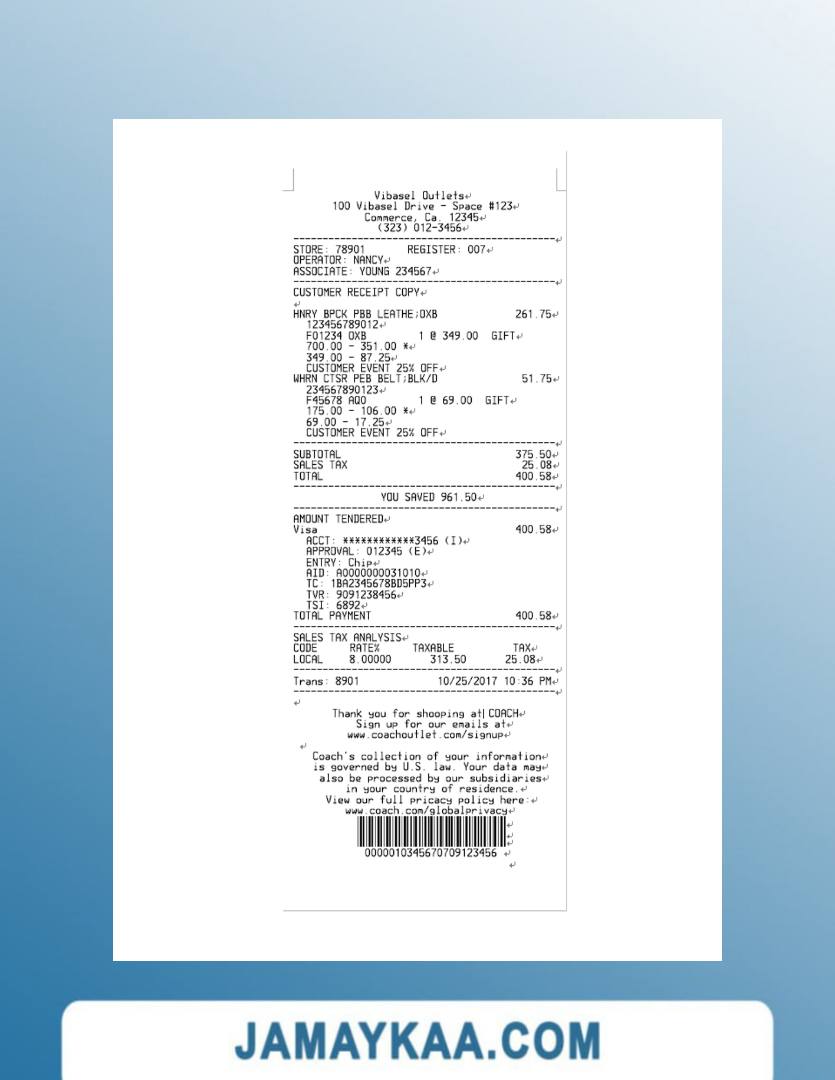 تصريح الإقامة 7-ELEVEN payment check 7-eleven store payment check ABC COMPANY cash receipt ABC PARK(PARKING) LTD payment check ADIDAS payment check Adidas store payment check Adnoc company payment check Adnoc company payment receipt AGENCY payment receipt AGILIRON POS payment check ALBERTS TABLE payment check ALDI STORE receipt template ALKOR AND KO payment receipt Amazon company payment receipt AMS-300F payment check APHRODITE CAFE payment receipt Apple company payment check Apple company payment receipt Apple store payment check Armani outlet payment receipt ARONIUM payment check Asda store payment receipt ASDA stores payment receipt At&t company payment receipt At&t telecommunications company receipt ATOL payment check Auto Zone payment receipt Aux Ptt payment check AZS GAS payment check BAKMI GM PLAZA payment receipt BANK payment receipt BANK receipt version 2 BERQ HOTEL payment receipt BEST BUY payment receipt BIOCONTROL payment receipt BOUTIQUE payment receipt BP EUROPA SE ODDZIAL receipt BP express shopping limited payment check BP Nectar rewards payment receipt BROADWAY JOE'S CHEESE STEAK'S payment receipt Burger King payment receipt BUSINESS COMPANY receipt BUSINESS COMPANY receipt version 2 CAFE payment check Canada BMO bank payment recceipt Canada BMO bank receipt Canada CIBC bank payment check Canada Loreal payment check Canada NBC bank payment receipt Canada RBC bank check Canada RBC bank payment check Canada Scotiabank payment receipt Canada Subway company payment receipt Canada Whole foods market payment receipt CARE RITE PHARMACY payment check CAR PARKING payment receipt Carrefour supermarket payment receipt Carrefour supermarket receipt Cartier payment receipt CASHIER'S CHECK payment receipt CASH receipt sample CASH RECEIPT template CENTAMAN payment check Chanel boutiques payment check Chanel brand store payment receipt CHAPELBANK HOTEL payment check Circle K store payment receipt Circle K store receipt COFFEE SHOP payment check COFFEE SHOP payment receipt template Coles supermarket payment receipt COMPANY payment receipt Conad retail store payment receipt CO-OPERATIVE GROUP LIMITED payment check COSTCO payment receipt Costco wholesale payment check COST GASOLINE payment check template COTCO WHOLESALE payment receipt CRONUS FOOD MARKET receipt CTBC BANK payment receipt CVB PHARMACY receipt template CVC_pharmacy Cvs pharmacy check CVS pharmacy payment check CVS pharmacy receipt CVSx LOCAL PHARMACY payment receipt DAILY CAFE payment check DBS bank payment check Decathlon store payment receipt DHL service shipment receipt Dior company payment receipt DIOR payment receipt Disneyland park payment check Disneyland payment receipt DIXIS payment receipt Dollar general store paymet check Dollar tree store check Dollar tree store payment receipt Dunkin donuts receipt Edeka supermarket payment receipt ELECTRONIC RECEIPT template ELLA'S HAIR SALON LLC payment receipt Eneos corporation payment receipt Etisalat group payment receipt EXPORT HOUSE payment check EYE OF THAI-GER payment receipt EYE OF THAI-GER payment receipt version 2 Fanduel sportsbook payment check Fanduel sportsbook payment receipt FAST FOOD payment receipt Fedex corporation receipt Fedex office payment receipt FOLKLORE ALBUM payment check FOOD COURT receipt template FOOD MARKET receipt template France BNP Paribas payment check FUEL DEPOT payment check FULL TAX receipt Germany Aldi Sud supermarket payment receipt Germany Kaufland payment receipt GROCERY DEPOT payment check Gucci brand store receipt Gucci fashion company payment receipt Gus's chevron payment check H&M retail payment check H&M store payment check Harrods payment receipt HERBAL MEDICAL payment receipt Hermes fashion house payment check HONG KONG SUPERMARKET payment receipt HSBC payment check Huawei corporation payment check Huawei store payment check Hyatt regency payment receipt HYPER CRONUS payment receipt HYPERMARKET payment receipt (version 2) HYPERMARKET payment receipt ICE CREAM SHOP payment check IDEA SOLUTIONS payment receipt Ikea global company payment check Ikea holding payment check ILIO'S RESTAURANT payment check IML payment receipt India HDFC bank payment check INDIANA TOLL payment check Indian oil company payment check Indian oil company payment receipt JACK payment receipt Japan 7-eleven payment receipt Japan Uniqlo company payment receipt JASON DEMO SITE receipt JD sports payment check JD sports store payment check JD sports store payment receipt JESSIE'S CLOTHING STORE receipt JUICE STATION payment check KFC payment check KFC payment receipt (version 2) KFC receipt KIDS WORLD payment receipt KINGS MARKET payment check KITSCH AT EMBASSY payment check KIWANA RESTAURANT payment check K-MARKET IVALO payment receipt KOREAN SHOP payment receipt Kroger company payment check Lego store payment check Lego store payment receipt LEROY MERLIN payment check LIBERTY PARKING receipt Lidl grocery store payment receipt LIDL payment receipt Lidl supermarket payment check Lidl supermarket payment receipt LIZMAT PHARMACY receipt LOCAL DRUG PHARMACY payment check Louis Vuitton payment receipt LOVES#207 payment receipt LOWE'S HOME CENTER payment receipt LOWE'S payment receipt LOWE'S payment receipt Lowes retail company payment slip Lululemon store payment receipt MAGAZINE payment receipt MAIN STREET RESTAURANT payment check MARIANNA payment check Marina Bay Sands payment check MARSHALLS payment receipt Marshalls store payment check McDonald's Fast-food restaurant receipt McDonald's restaurant payment check MEGA BIGBOX payment receipt MEIJER payment check MENARDS payment receipt Mercadona payment receipt Mercedes-Benz service payment receipt Mitsui outlet park payment slip MOBIWEB payment receipt NATIONAL ENTERPRISES payment receipt NEW STORE payment receipt Nike shop payment receipt Nike store check OOO COMPANY payment receipt ORDER check template Pacific heights chevron auto repair payment receipt PARKING GARAGE payment check template PARKING GAR